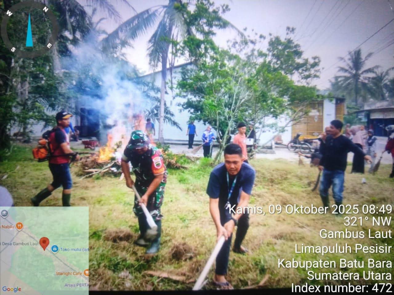 Batu Bara |Topannews.com- Dalam rangka menjaga kebersihan lingkungan agar tetap bersih dan sehat, Babinsa Koramil 03/Lima Puluh Kodim 0208/Asahan, Serda Sutikno bersama Kepala Desa Gambus Laut dan warga binaan melaksanakan kegiatan gotong royong di wilayah desa setempat, Kamis (9/10/2025).