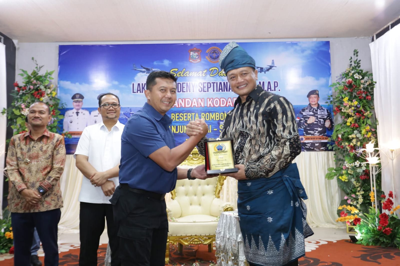 Tanjungbalai –Topannews.com- Komandan Kodim 0208/Asahan Letkol Inf Edy Syahputra, S.H., M.I.P. turut menyambut kedatangan Komandan Kodaeral I Laksda TNI Deny Septiana, S.I.P., M.A.P. dalam rangka kunjungan kerja sekaligus malam ramah tamah yang dilaksanakan di Pendopo Rumah Dinas Wali Kota Tanjungbalai, Rabu malam (15/10/2025).