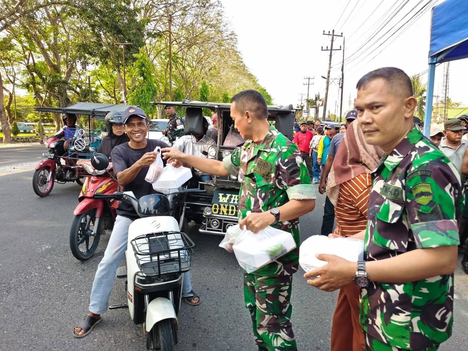 Kegiatan yang dilaksanakan setiap sore ini menyasar para pengguna jalan, pengendara roda dua maupun roda empat, serta masyarakat sekitar yang melintas. Personel Kodim dengan penuh semangat dan humanis turun langsung ke jalan membagikan paket ta’jil sebagai bentuk kepedulian dan kebersamaan di bulan penuh berkah.