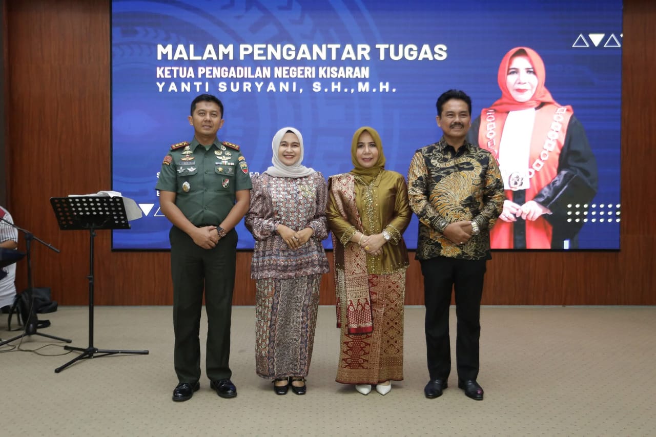 Asahan – Topannews.com.-Komandan Kodim 0208/Asahan Letkol Inf Edy Syahputra, S.H., M.I.P., didampingi Ketua Persit Kartika Chandra Kirana Cabang XXXV Dim 0208/Asahan Ny. Vina Edy Syahputra, S.E., M.M. menghadiri acara malam pengantar tugas Ketua Pengadilan Negeri Kisaran, Ibu Yanti Suryani Siregar, S.H., M.H. Kegiatan berlangsung penuh khidmat di Pendopo Rumah Dinas Bupati Asahan, Selasa malam.
