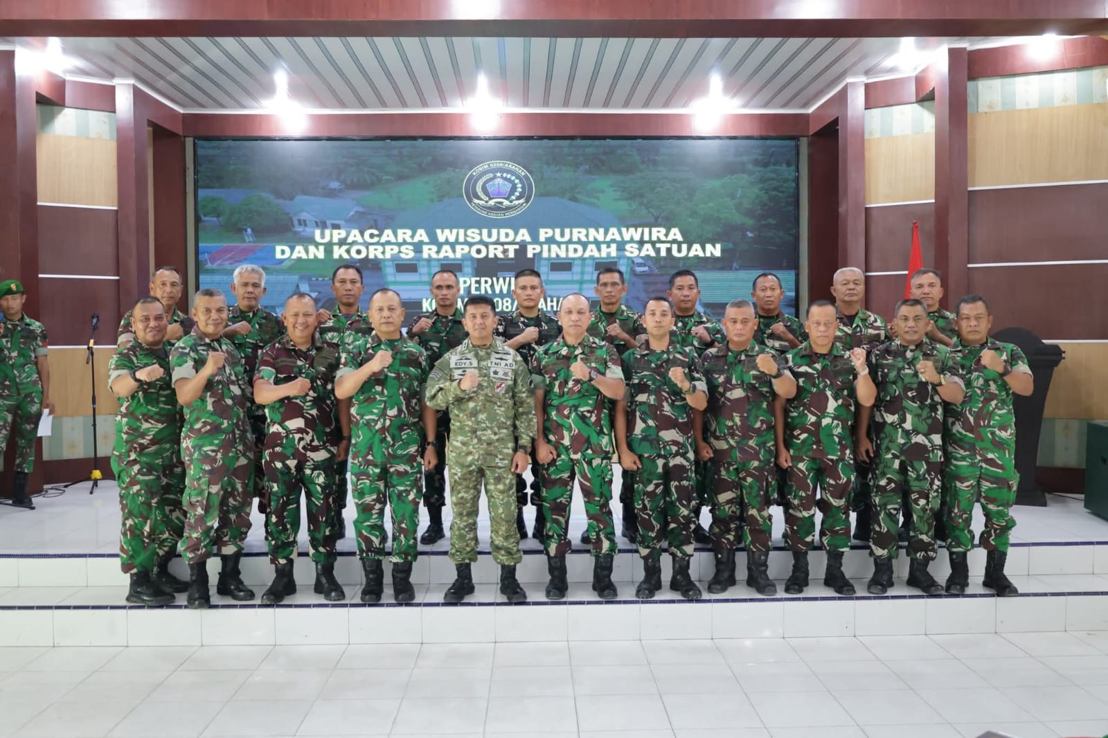Asahan – Topannews.com-Komandan Kodim 0208/Asahan Letkol Inf Edy Syahputra, S.H., M.I.P. memimpin langsung pelaksanaan upacara Wisuda Purnawira dan Korps Raport Pindah Satuan Perwira jajaran Kodim 0208/Asahan yang berlangsung khidmat di Aula Pandawa Sakti Makodim 0208/Asahan, Rabu (11/2/2026).