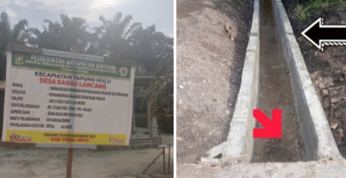 Kampar. Topannews.com.- Proyek pembangunan Drainase di desa Danau Lancang Kecamatan Tapung Hulu diduga mengalami penyimpangan tidak sesuai Standar