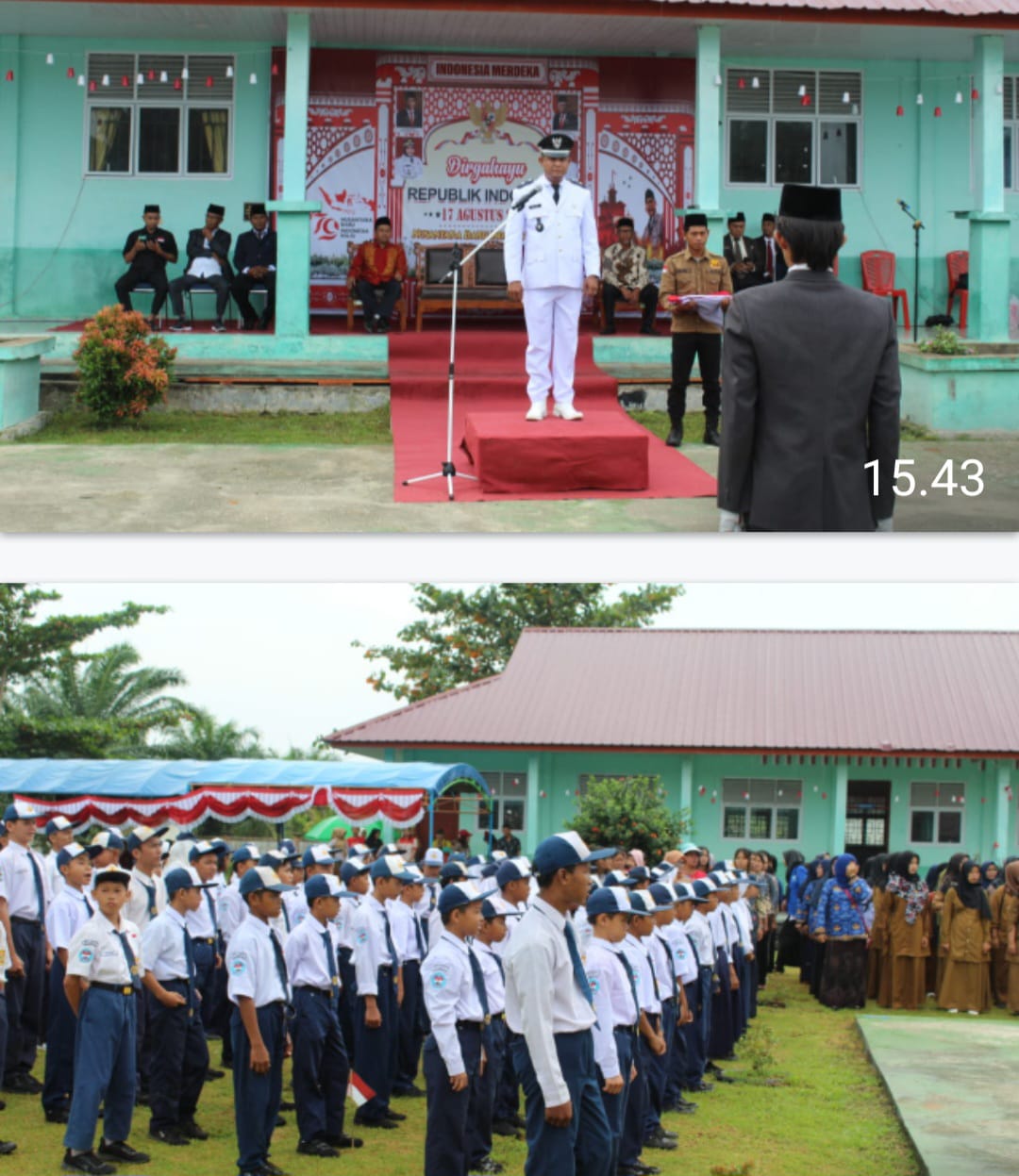 Upacara diikuti oleh para Tokoh masyarakat, Tokoh agama, serta seluruh perangkat desa diantaranya, Sekdes (Ibrahim), Ketua TP-PKK (Erlinda SE.), Ketua BPD (Nazri Yahya) Unsur Lembaga, siswa-siswi SD, SMP, Kepala sekolah serta para majelis guru.